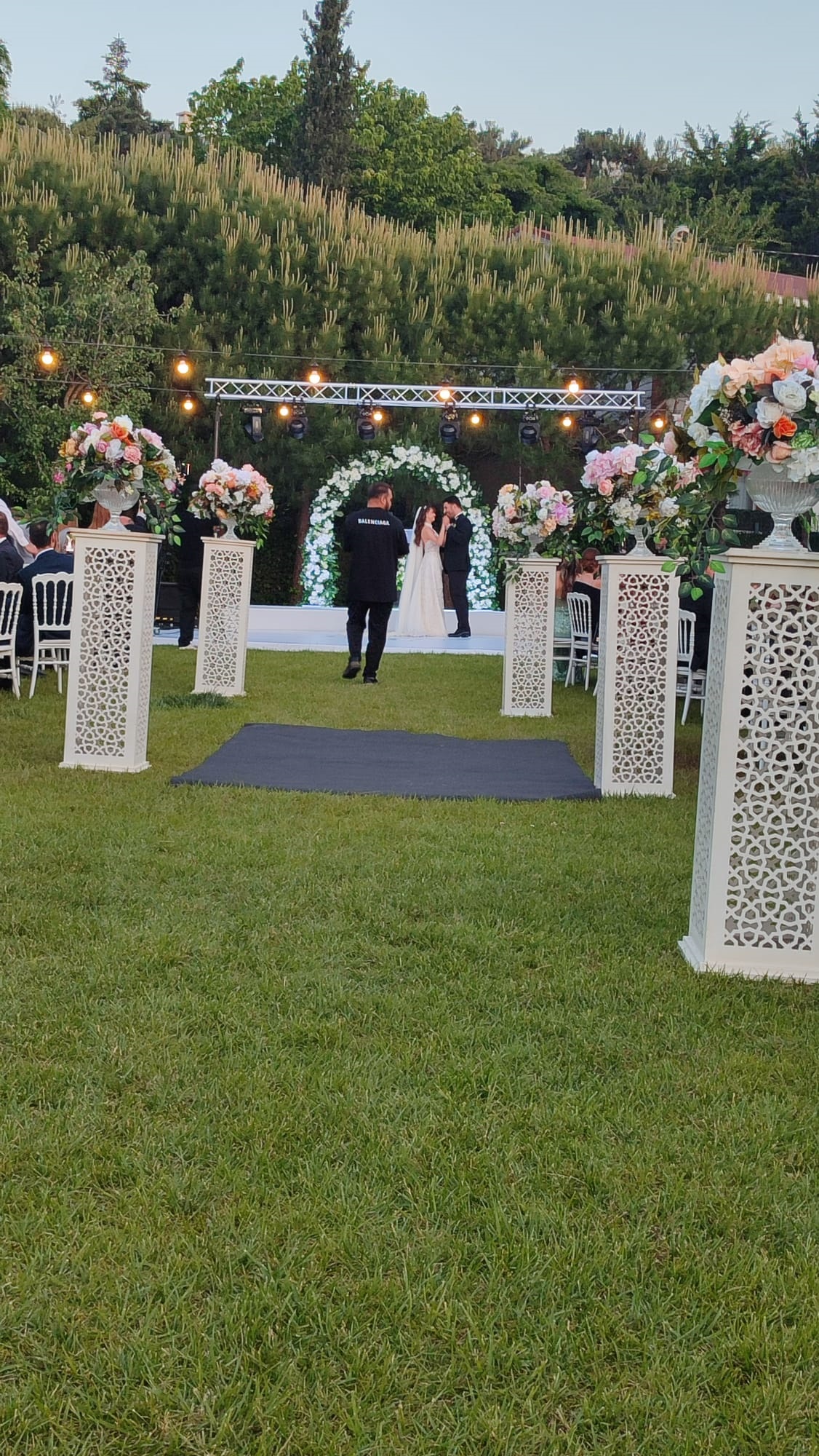 Düğünlerin en etkileciyi anlarından gelin ve damadın salona girişini ihtişamlı bir şova dönüştüren ve davetlilerin düğün alanına girdiği gösterişli alan olan yürüme yolu, mekanın boyutu ve düğün konseptine uygun olarak dekore edilir.